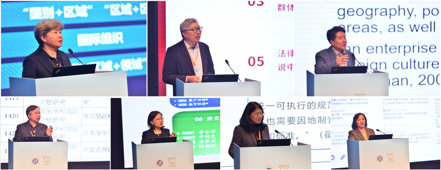 In the subsequent keynote forum, seven invited experts delivered keynote speeches in succession. Professor Zhao Ronghui from Shanghai International Studies University, in her presentation “Country and Region Studies with Language as the Pathway”, elaborated on the central role of language in the global knowledge production system. She pointed out that foreign language disciplines should avoid the misconception that knowing a foreign language equates to being able to conduct research and should actively explore practical pathways for country and region studies with language as the core approach. Professor Cai Shengqin from Zhongnan University of Economics and Law shared innovative approaches to interdisciplinary research between literature and legal texts. Professor Li Jianbo, Executive Deputy Editor-in-Chief of The Journal of Zhejiang International Studies University, discussed the orientation of country and region studies within foreign language disciplines. Professor Mao Haoran from China University of Petroleum (East China) proposed a paradigm shift in country and region studies from grand narratives to precise deconstruction. Professor Zhang Weilei from Shanghai University of International Business and Economics, Professor Liu Wenxia from North China University of Water Resources and Electric Power, and Professor Li Qian from Northwestern Polytechnical University shared their latest findings on foreign language talent cultivation, disciplinary differentiation, and the construction of a “macro-country and region studies” framework in engineering universities, respectively. The experts’ reports spanned multiple dimensions, from linguistics and literature to policy research and talent cultivation, fully demonstrating the broad prospects of foreign language disciplines in the field of country and region studies.