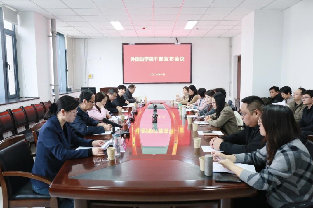 On the morning of January 14, the School of Foreign Languages held a cadre announcement meeting in the school’s conference room. Present at the meeting were Fan Daidi, Member of the Standing Committee of the Party Committee of the University and Vice President. Zhou Chao, Executive Deputy Director of the University Party Committee Organization Department; along with members of the School’s Party, administrative leadership team, department heads, the Trade Union chair, cadres at the section level and above, and faculty representatives. The meeting was chaired by Zhao Zhihou, the Secretary of the school’s Party Committee.
