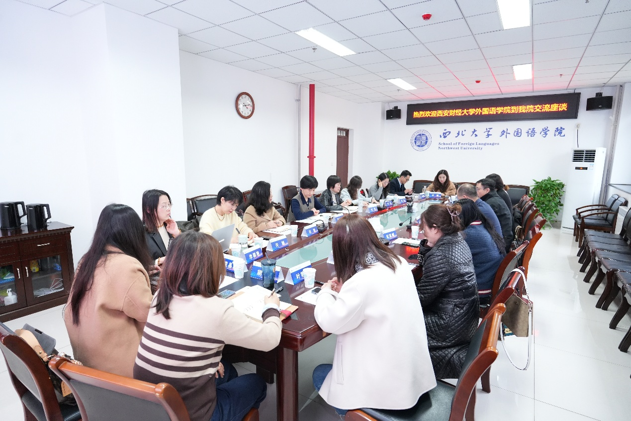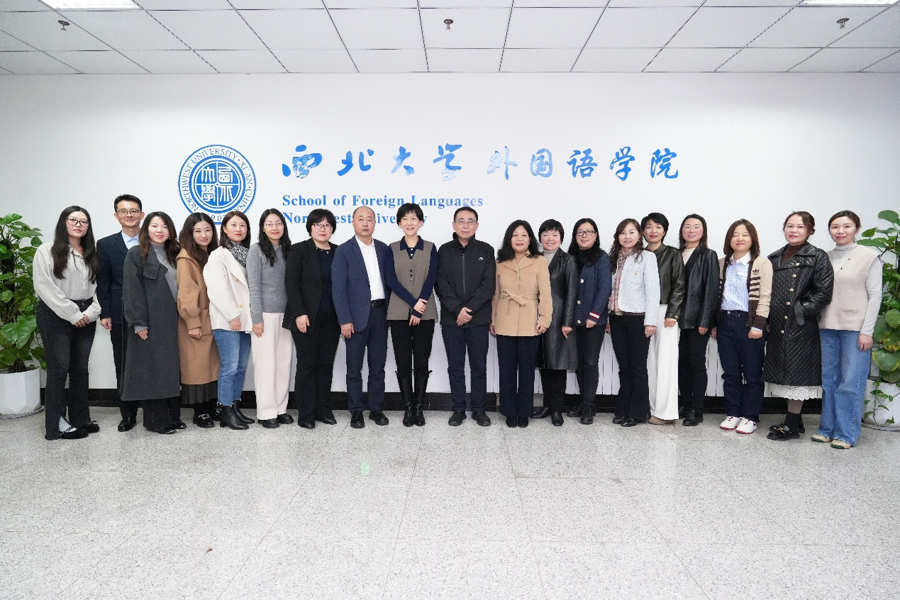 2025年11月7日下午4时,西安财经大学科研处处长郝新军、外国语学院院长杨宪平率队一行12人,莅临我院开展调研座谈。座谈会在学院会议室举行,由我院院长曹若男主持,教学副院长李蓂、研究生教研部田瑾教授、英语系主任李铁、大学英语教研二部主任李艳、院长助理许娜及科研秘书李朝艳共同参会。