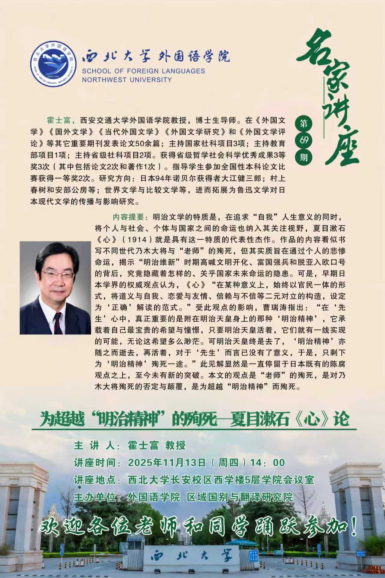 下一篇:西北大学外国语学院名家讲座系列之六十八