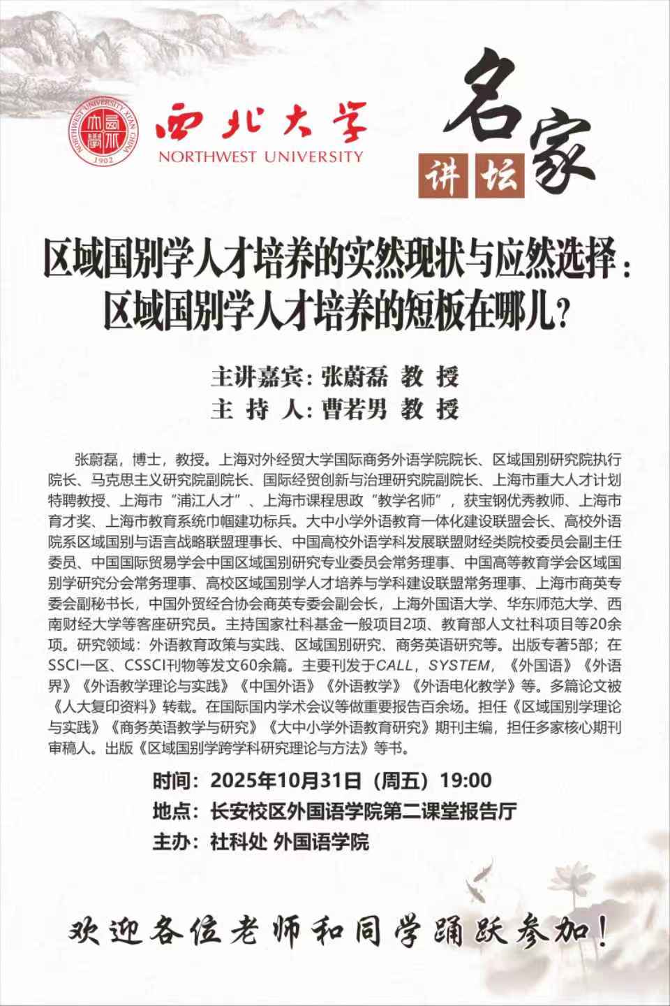 西北大学外国语学院名家讲座系列之六十四